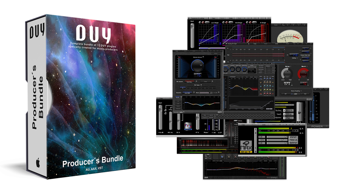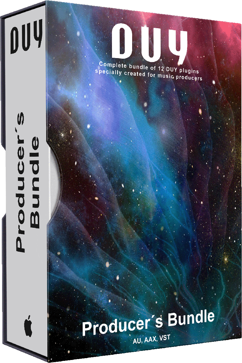 Le bundle du DUY Producer est une collection exceptionnelle de plug-ins de haute qualité conçus pour les formats 64-bit AAX, Audio Units et VST. Ce pack complet comprend 12 plug-ins remarquables qui garantiront une production audio d'un niveau supérieur. Il contient 12 incroyables plug-ins de haute qualité : LucidVerb, Dream Dynamics, Monster MIX, POWER, Analog BUS, DUY DaD Tape, DUY DaD Valve, DUY Deep Analog EQ, DUY Wide, DUY Silence, MAX DUY et DUY Shape.