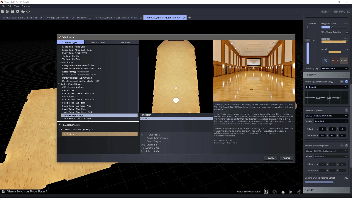 Le MIR 3D RoomPack 6 propose des modèles spatiaux de notre propre studio d'enregistrement, le Vienna Synchron Stage. Construit dans les années 1940 à côté des célèbres Rosenhügel-Filmstudios dans le cadre de la « Film City Vienna », ce lieu historique a subi une rénovation majeure en 2013, retrouvant ainsi son statut de site prisé. Aujourd'hui, il attire des clients de Hollywood et du monde entier pour des enregistrements de films, séries TV, jeux, publicités ainsi que des projets de musique classique et contemporaine.