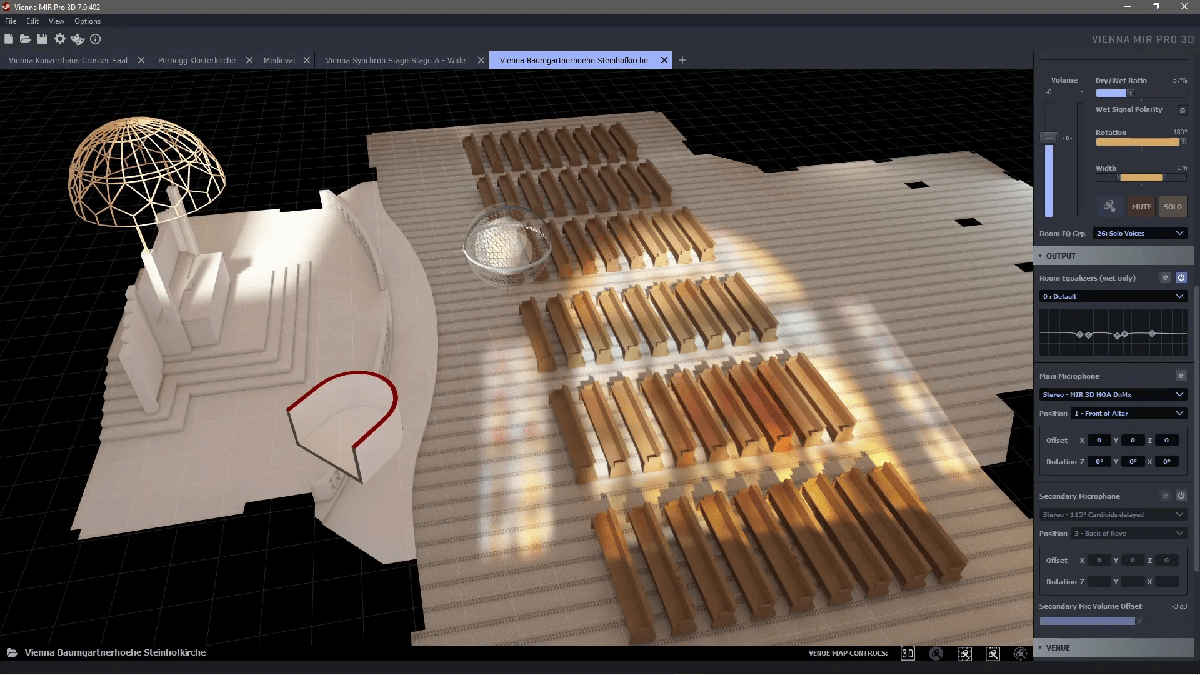 Le MIR 3D RoomPack 3 met en lumière un élément essentiel de la musique sacrée : la réverbération unique des églises. Ce pack contient plus de 4 200 réponses impulsionnelles capturées dans deux lieux d’exception : l’art nouveau de la Steinhofkirche à Vienne et l’église de pèlerinage gothique tardive Maria Strassengel en Styrie.