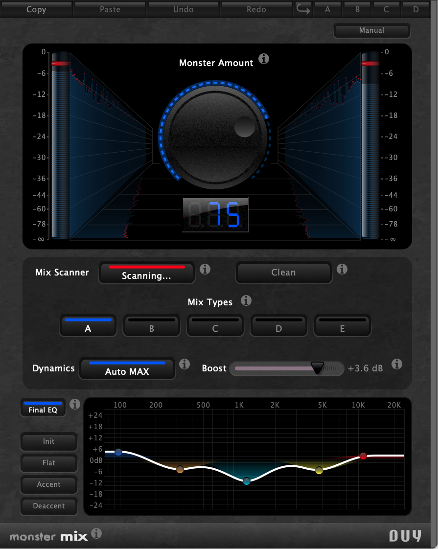 Monster Mix est un optimiseur automatique de dynamiques et d'égalisation, à la fois simple et puissant.
