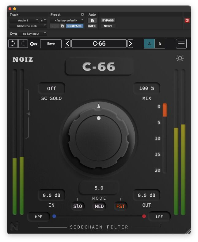 Le C-66 offre la chaleur, le punch et la musicalité de la compression analogique classique inspirée du BB F66, offrant une adhérence douce et musicale.