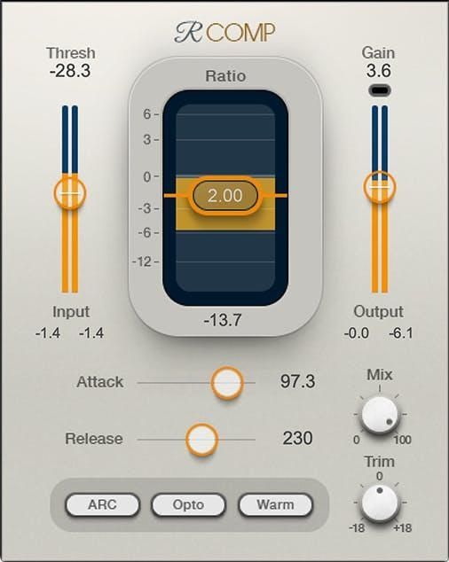En tant que référence en matière de compresseurs modernes, R-Comp apporte clarté et définition, avec la polyvalence supplémentaire des temps d'attaque/libération classiques optiques ou modernes "électriques".