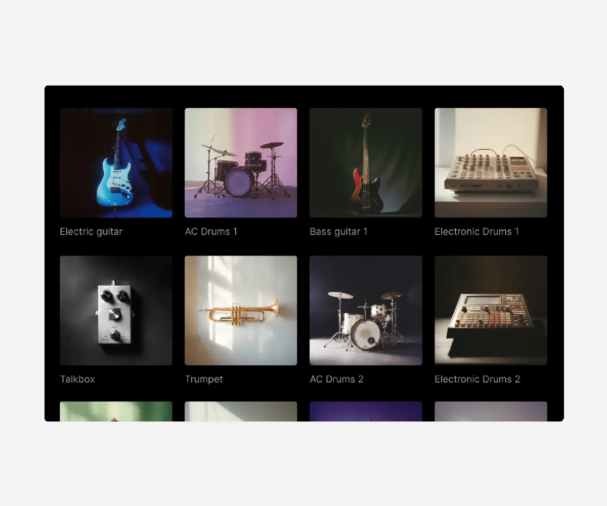 • Modèles d'instruments AI : Transformez des mélodies fredonnées ou du beatboxing en sons d'instruments (batterie, guitare, violon) pour un prototypage rapide ou une exploration musicale créative.