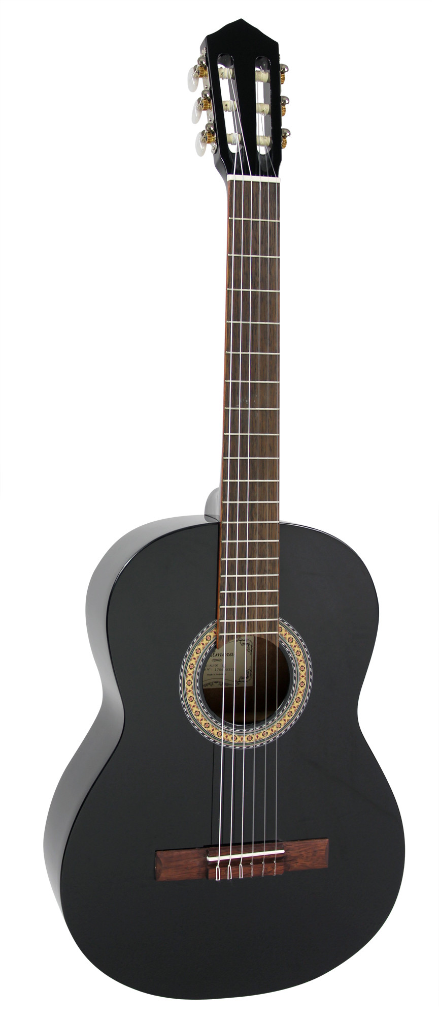 Cette guitare classique 3/4 se distingue par sa conception soignée et ses essences de bois sélectionnées pour offrir un instrument fiable et agréable à jouer. Elle associe une table en épicéa, un fond et des éclisses en acajou, ainsi qu’un manche en acajou, pour une construction harmonieuse et adaptée à un usage régulier. Son sillet de 45 mm contribue à un confort de jeu appréciable, tandis que ses cordes Bosset participent à une sensation de jeu cohérente. Sa finition noir brillant lui donne un aspect élégant et sobre.