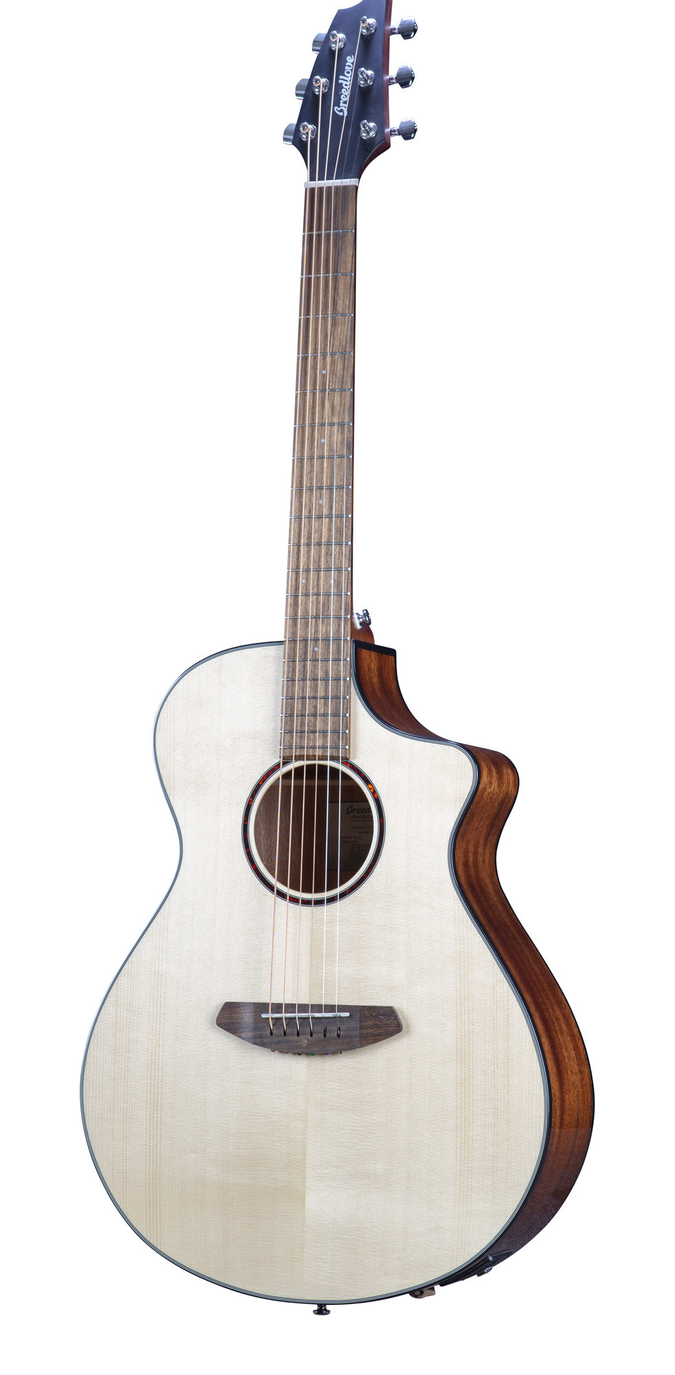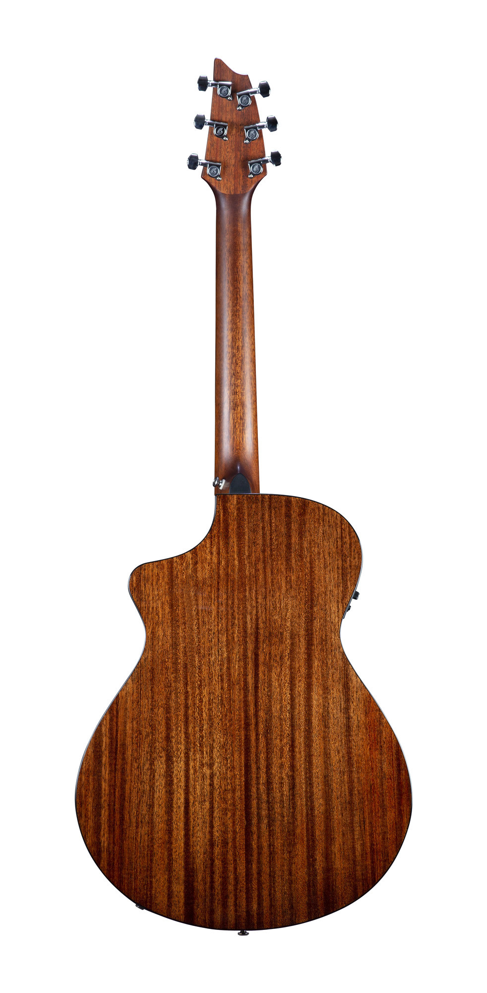 Ce modèle associe une table en épicéa européen massif à un fond et des éclisses en acajou pour offrir une construction soignée et équilibrée. Le manche en acajou, la touche et le chevalet en ovangkol, ainsi que le sillet de 43 mm, contribuent à une prise en main confortable et à une configuration précise.