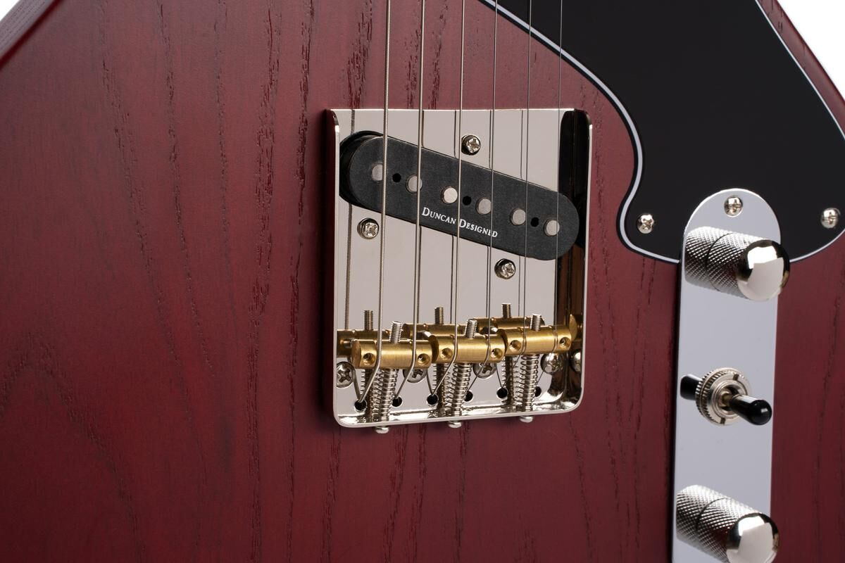 La Cort Sunset TC Bordeaux offre une excellente qualité de fabrication avec des matériaux sélectionnés pour leur sonorité et leur durabilité. Les micros CORT Voiced Tone VT90 & TE-103B permettent une grande diversité de sons, tandis que l’accastillage nickelé et les cordes D'Addario assurent une stabilité et une longévité accrues. Son design soigné et sa finition en bordeaux pores ouverts apportent également une touche esthétique élégante.