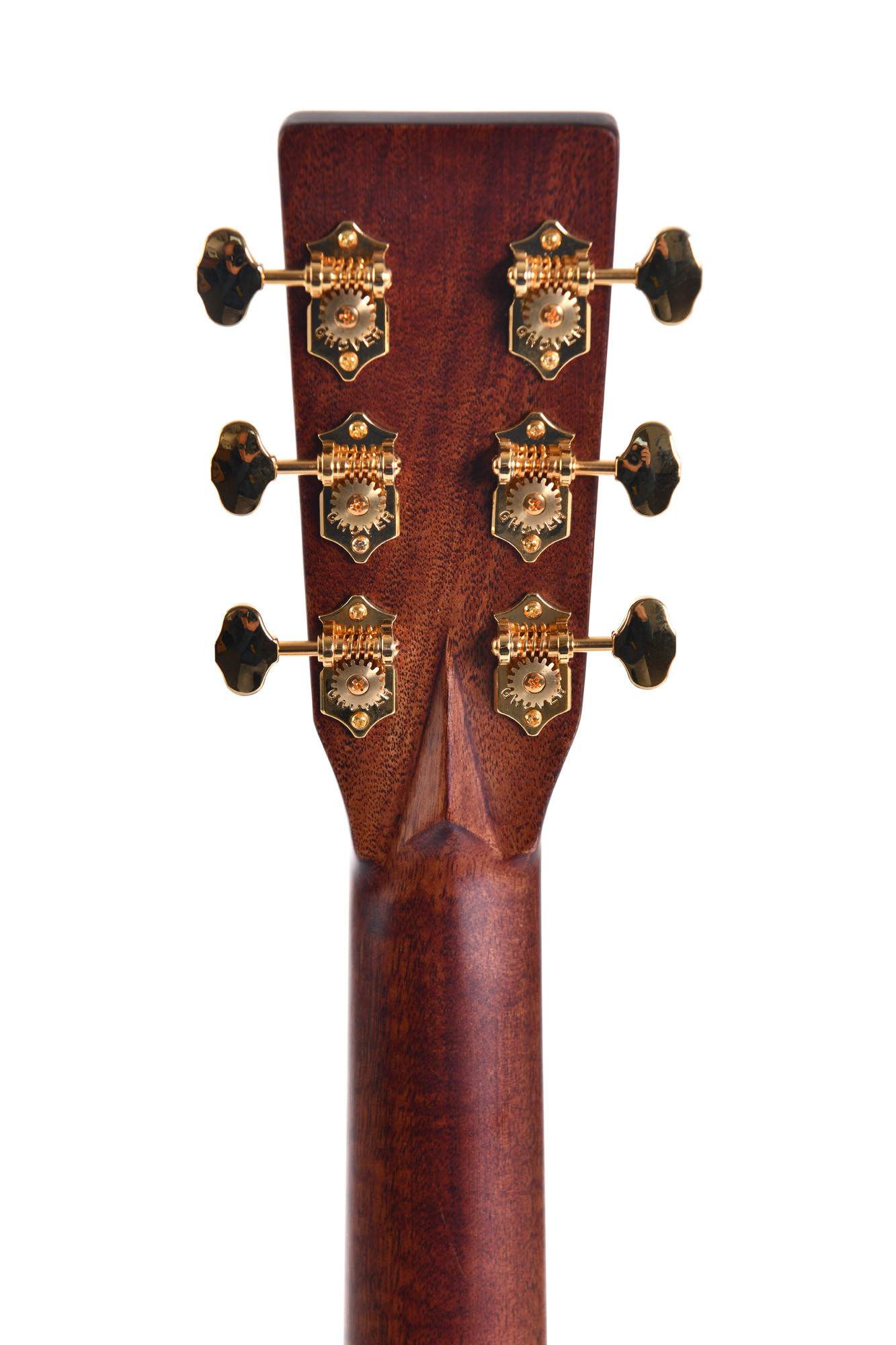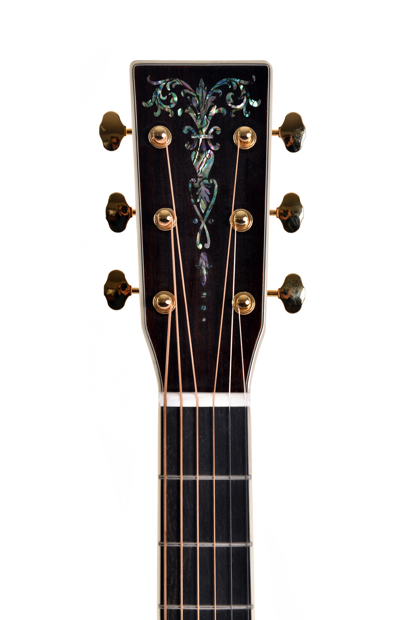 Il se distingue par sa table en épicéa Sitka massif, son fond et ses éclisses en palissandre indien massif, sa touche en ébène, ses sillets en os et ses mécaniques ouvertes Grover dorées.