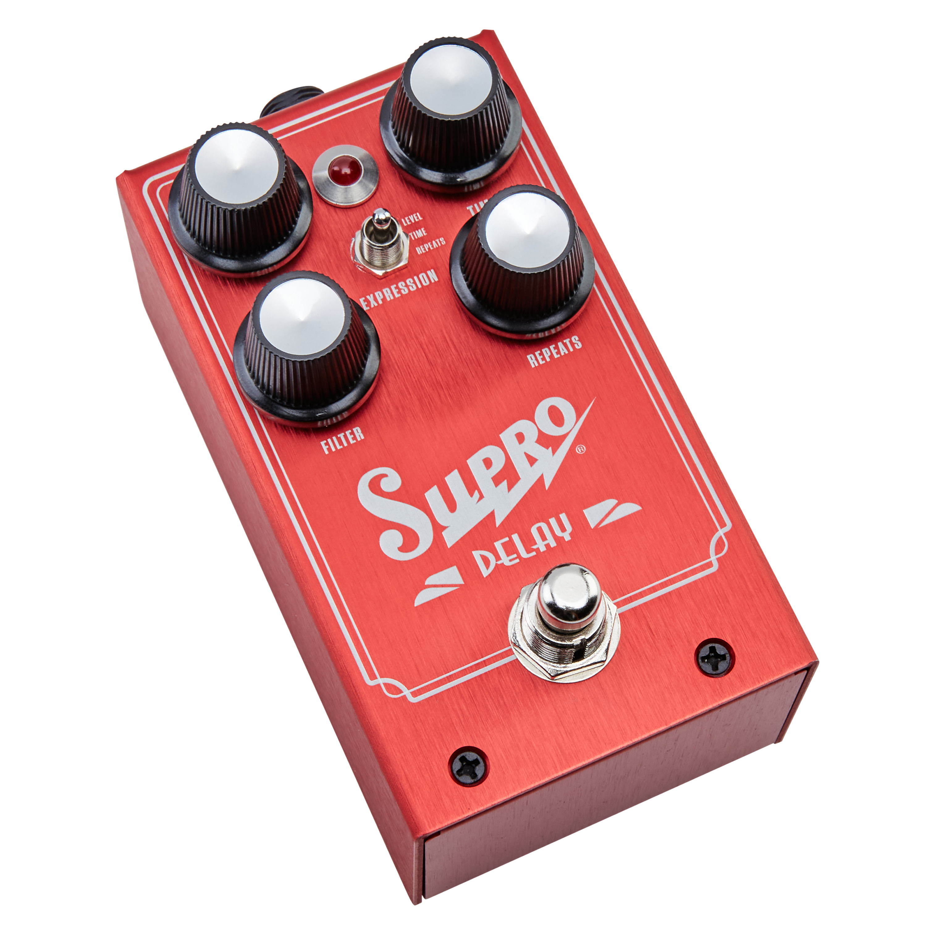 Le Supro Delay est une pédale d’écho conçue pour offrir le caractère chaleureux et musical des delays vintage des années 60 et 70, avec des performances modernes. Entièrement analogique, elle intègre une paire de puces IC MN3005 à haute tension, capables d’atteindre jusqu’à 600 ms de temps de retard. Cette conception apporte une marge de manœuvre plus importante, une meilleure plage dynamique et une clarté renforcée, pour un rendu précis et expressif.