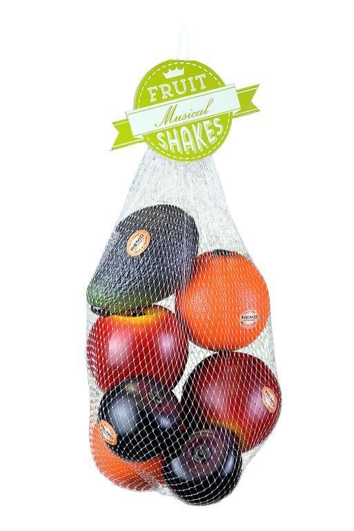 2 grosses pommes, 2 oranges, 2 prunes et 1 avocat en sac filet avec carte