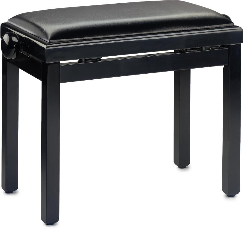 Banquette de piano, noir brillant, avec pelote en skai noir