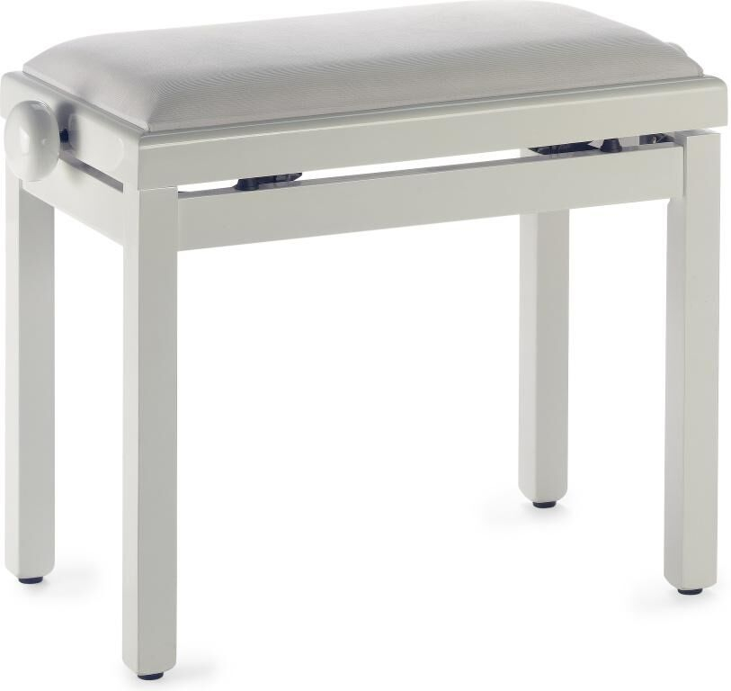 Banquette de piano, couleur blanc perle brillant, avec pelote en velours blanc