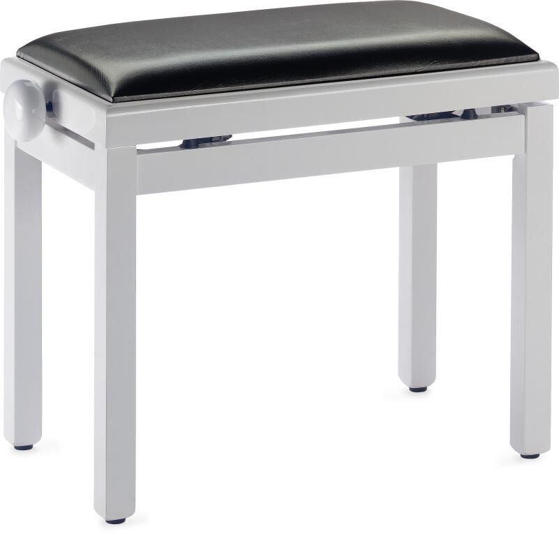 Banquette de piano, couleur blanc brillant, avec pelote en skaï noir