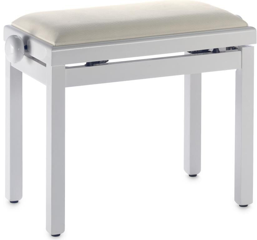 Banquette de piano, couleur blanc brillant, avec pelote en velours beige