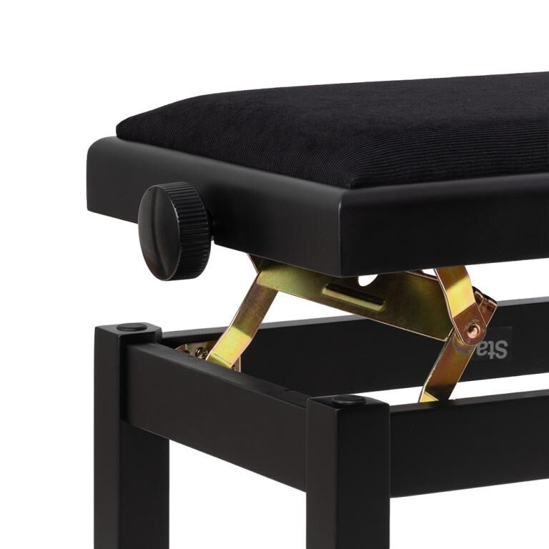 Banc de piano noir mat avec assise en velours noir et boutons GRIP