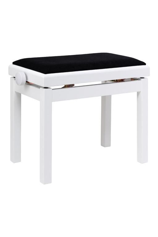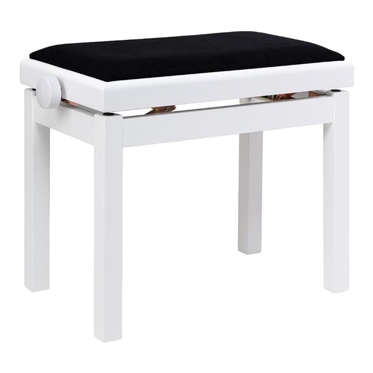 Banc de piano blanc mat avec assise en velours noir et boutons GRIP
