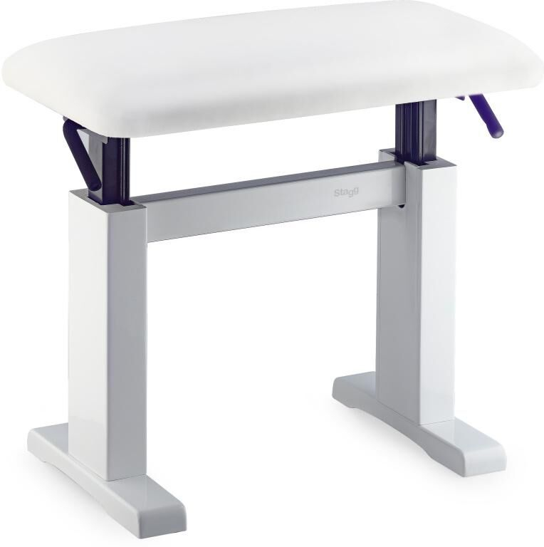 Banquette hydraulique pour piano, blanc brillant, avec pelote en skaï blanc anti-feu