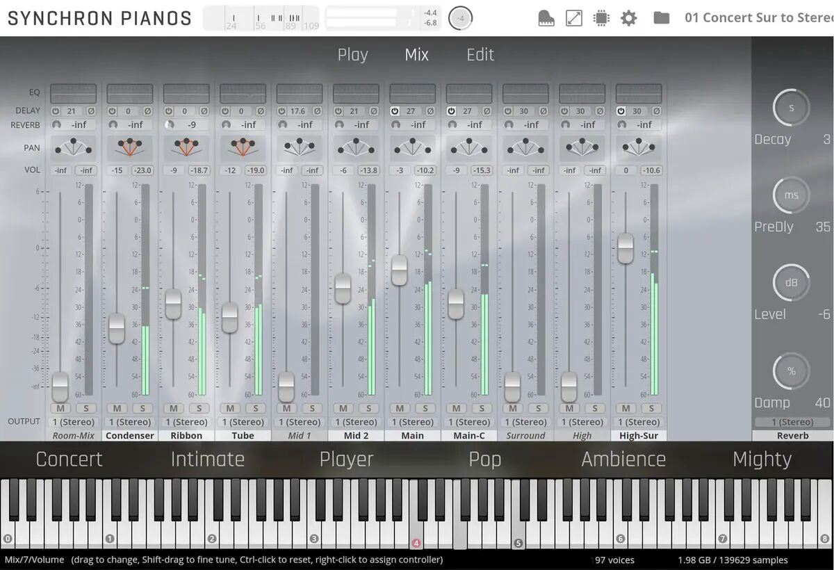 • Six préréglages préconfigurés : "Concert", "Intime", "Interprète", "Pop", "Ambiance", "Puissant"