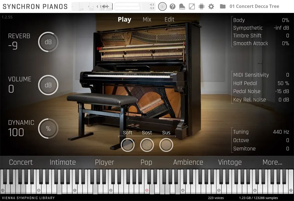 Un charme vintage distinct caractérise cette recréation numérique d'un piano droit C. Bechstein datant de 1904, apportant une ambiance unique et nostalgique à votre studio. Il respire l'air d'une époque révolue avec un caractère tonal que l'on ne trouve pas dans les pianos modernes. Représentant le summum de l'artisanat allemand du piano, ce piano droit est un véritable bijou rétro dans le meilleur sens du terme - doux mais clair, avec une basse chaude, riche et sonore, tout en étant béni d'un médium d'une belle sonorité. Malgré ses origines historiques, il va bien au-delà d'une simple pièce d'histoire jouable. Son caractère tonal uniforme en fait l'outil idéal pour des projets de tous genres. Enregistré dans l'ambiance intime et contrôlée de la scène B du Synchron Stage de Vienne, permettant ainsi des options de réverbération personnalisables, ce piano droit ne se contente pas de raviver le son de 1904, il imprègne chaque projet musical du timbre inimitable de Bechstein.