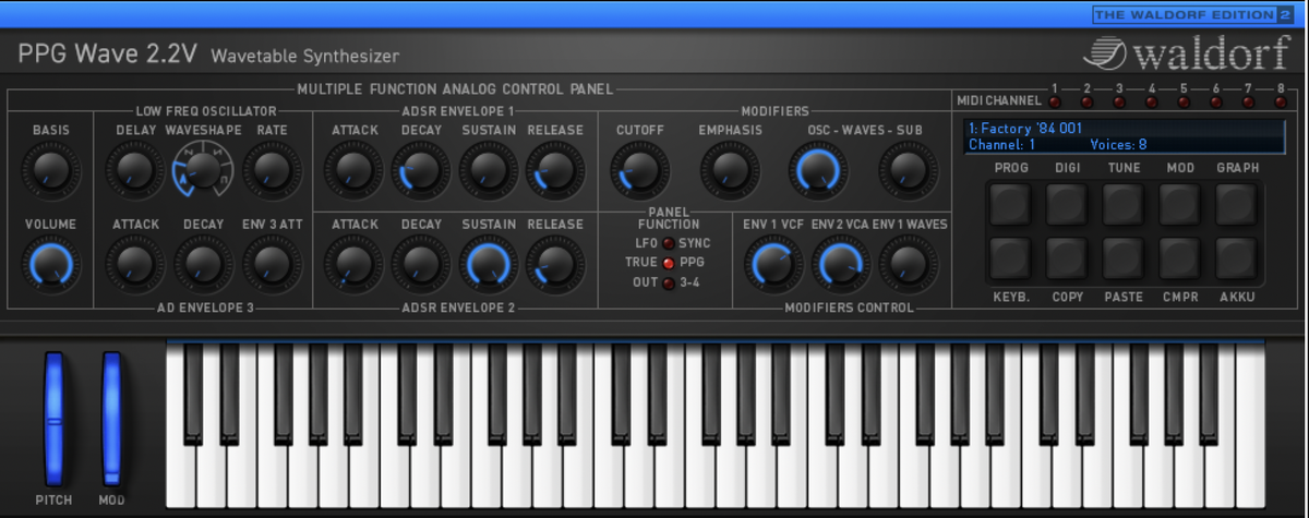 Ressuscité pour la première fois en 1989 avec le Waldorf Microwave, il connaît aujourd'hui une nouvelle vie dans les studios virtuels des ordinateurs Mac et PC. La synthèse classique par table d'ondes est réputée pour créer les sons hybrides audacieux à la fois analogiques et numériques qui ont marqué de nombreux succès au fil des décennies.