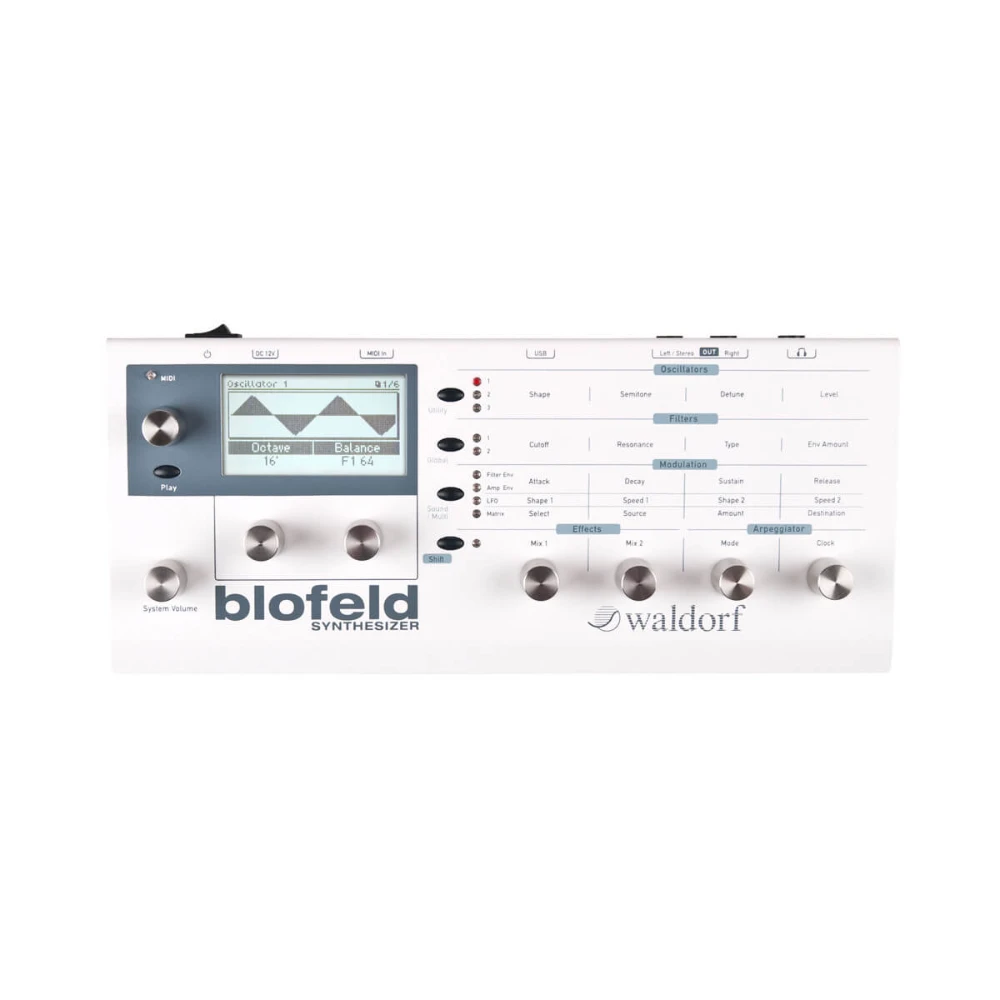 Capable de produire à la fois des timbres analogiques classiques et des sons tranchants, métalliques et cloche-imitant, synonymes des productions novatrices de Waldorf et PPG, le Blofeld se distingue comme une petite centrale moderne. Son architecture de synthèse avancée permet aux musiciens d'évoquer des ambiances vintage ou de créer de nouveaux paysages sonores électroniques. Malgré son profil mince et élégant, le Blofeld reste exceptionnellement polyvalent et accessible, offrant une synthèse de haut niveau à une valeur sans précédent.