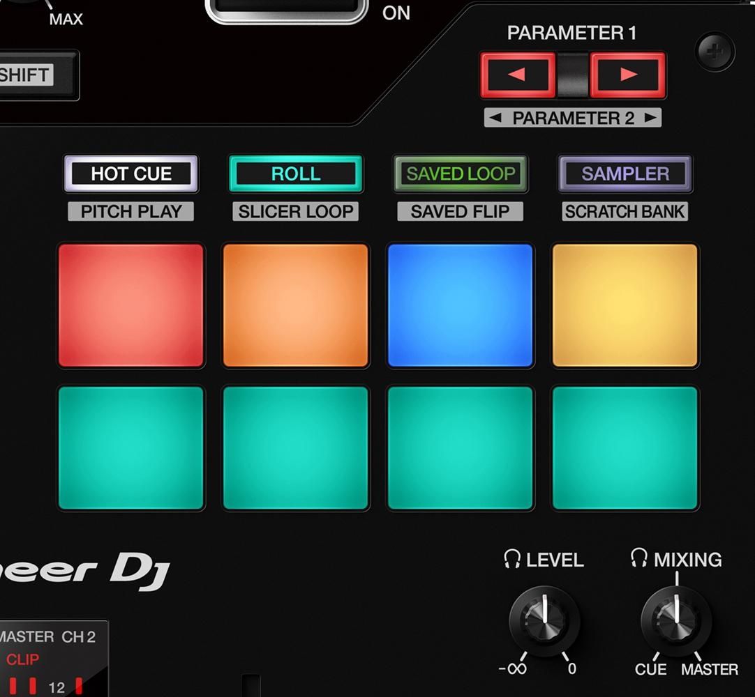 • 16 pads de performance rétro-éclairés RGB pour déclencher des hot cues, des boucles, des rolls, et plus encore