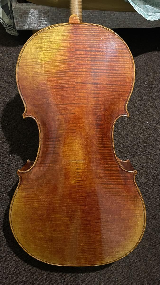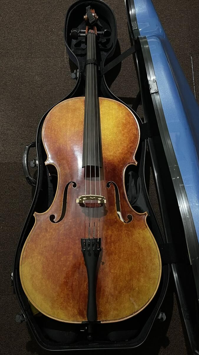 Violoncelle de soliste, 4/4, fabrication artisanale en 2006 à Mirecourt par le luthier Alain Carbonare.