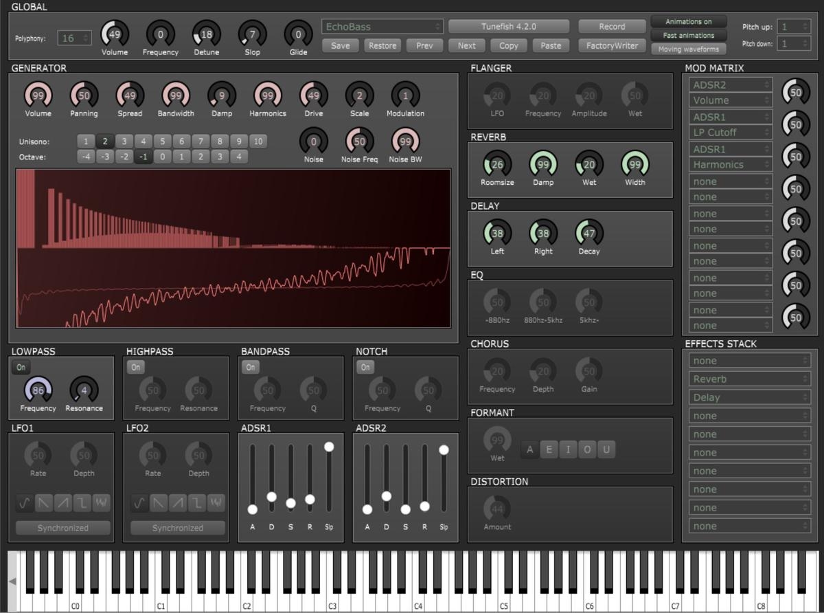 Tunefish est un synthétiseur analogique virtuel extrêmement compact.
